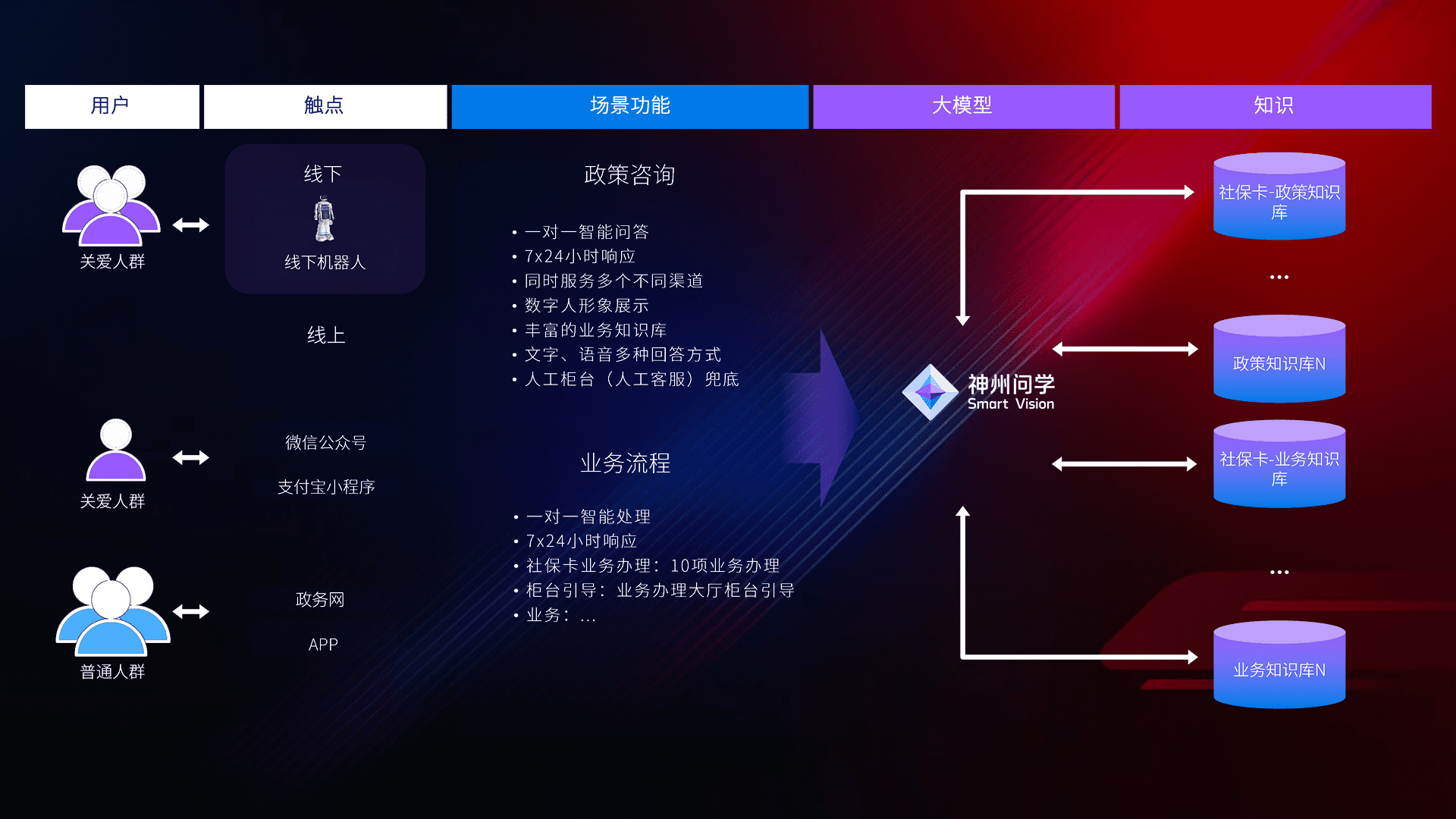 • 线上线下全覆盖:线上提供微信公众号、、、、支付宝小程序、、、政务网、、app多种渠道,,与线下机器人形成完整服务体系。。